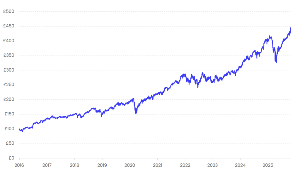 And, towards the end of what has been a turbulent year in the US market, the S&P 500 has hit another all-time high, having recovered from the shock of Donald Trump’s trade tariffs back in April. The chart below shows the performance of the S&P 500 since 2016.