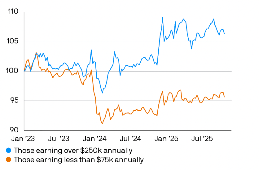 Source: J.P. Morgan Asset Management. The chart is based on select internal Chase data. Data as of 31 October 2025.