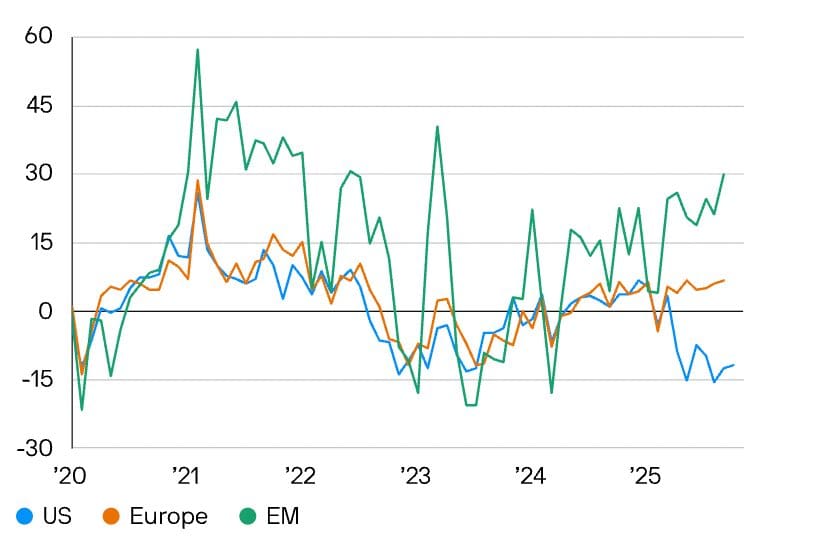 This is not our core scenario, but if US central bank independence really comes into question, the asset that might suffer most acutely is the dollar. We remind investors again to think carefully about their currency exposure since, as in 2025, dollar moves have the potential to be a major contributor to final returns.