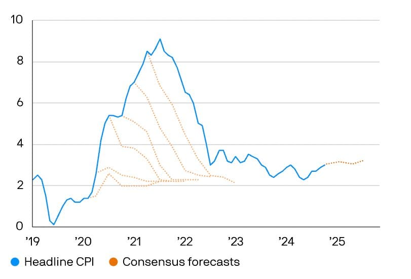 Exhibit 6: Consensus expects US inflation to remain subdued, but didn’t forecast the last spike